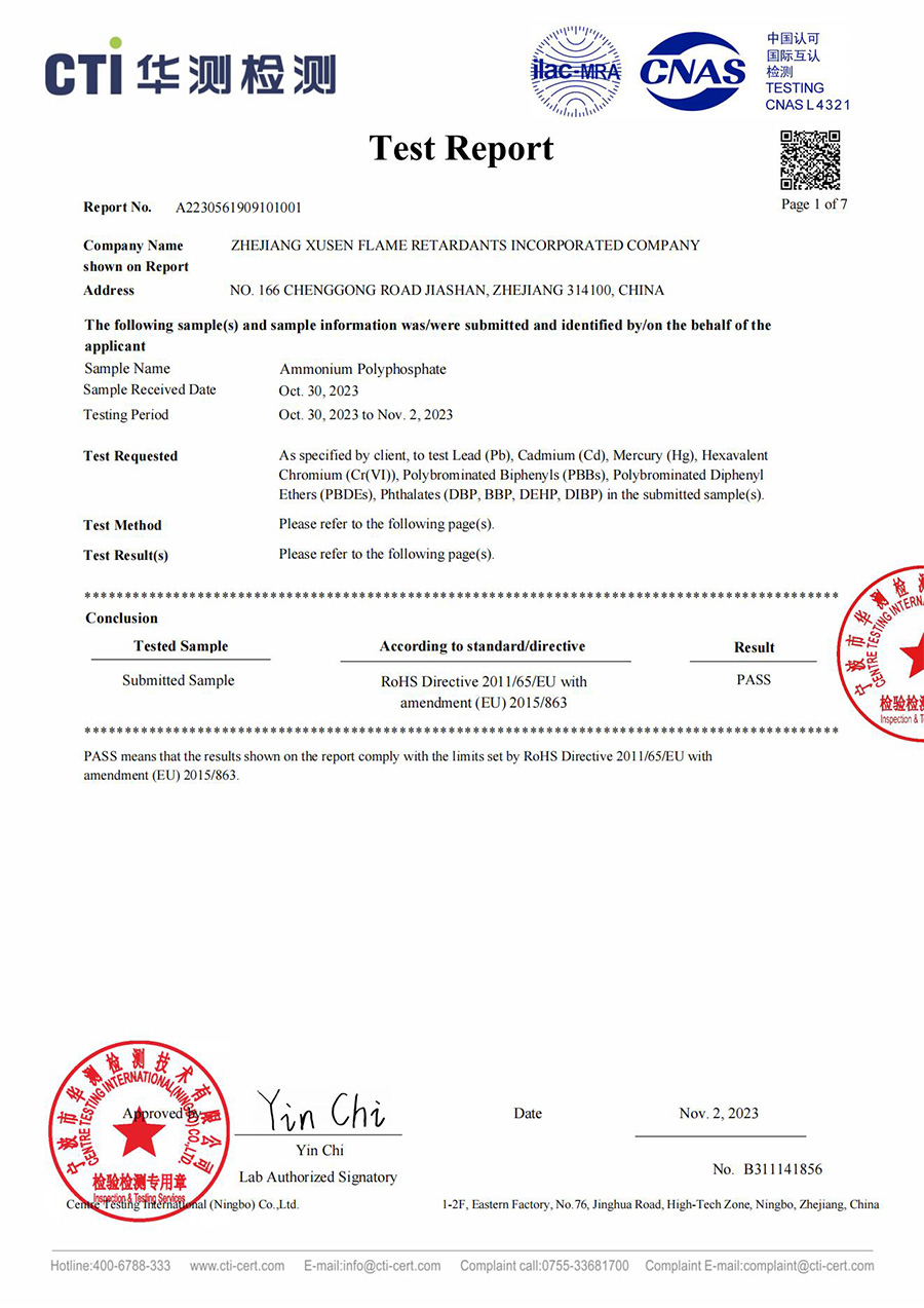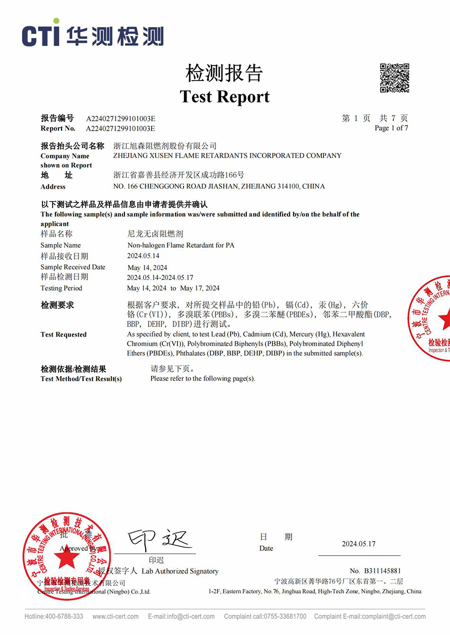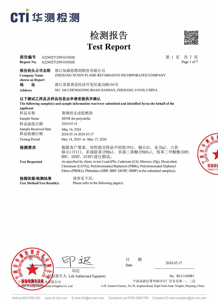 Огнестиральный отчет о пламене для испытаний Polyolefin Rohs