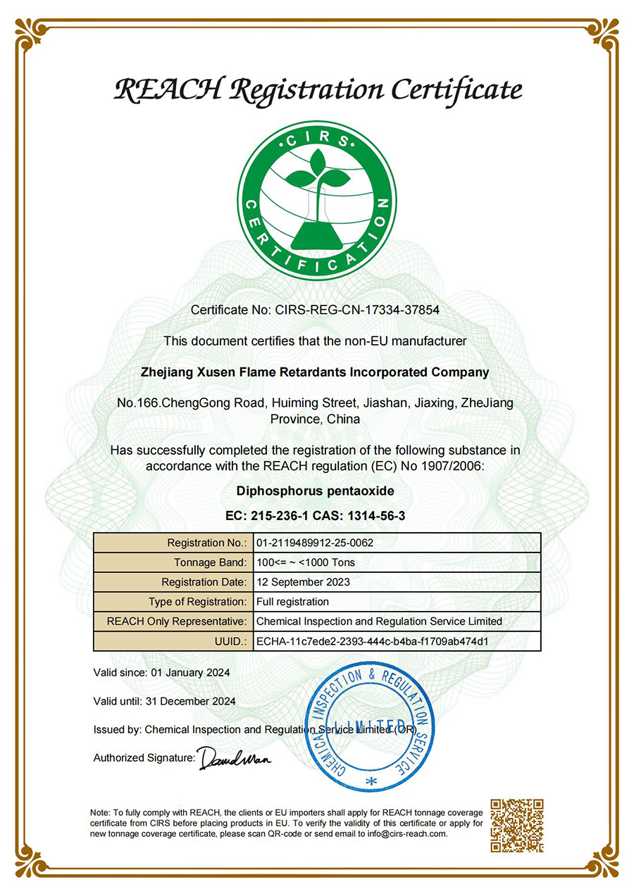 Сертификат регистрации Diphosphorus Pentoxide Registration